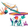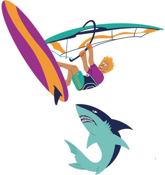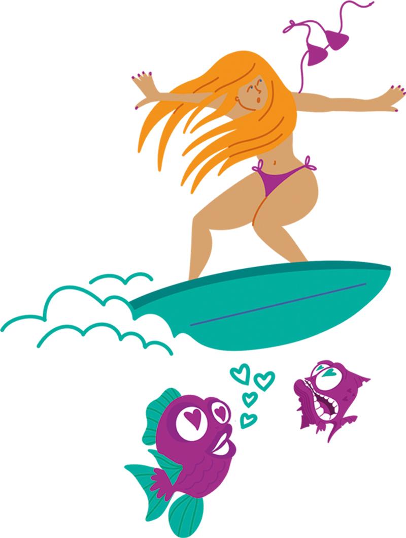 Оригинални забавни скечове от водните спортове (уиндсърф, сърф, кайтсърф) се разиграват между видимата илюстрация на тениската и невидимата в джоба.
