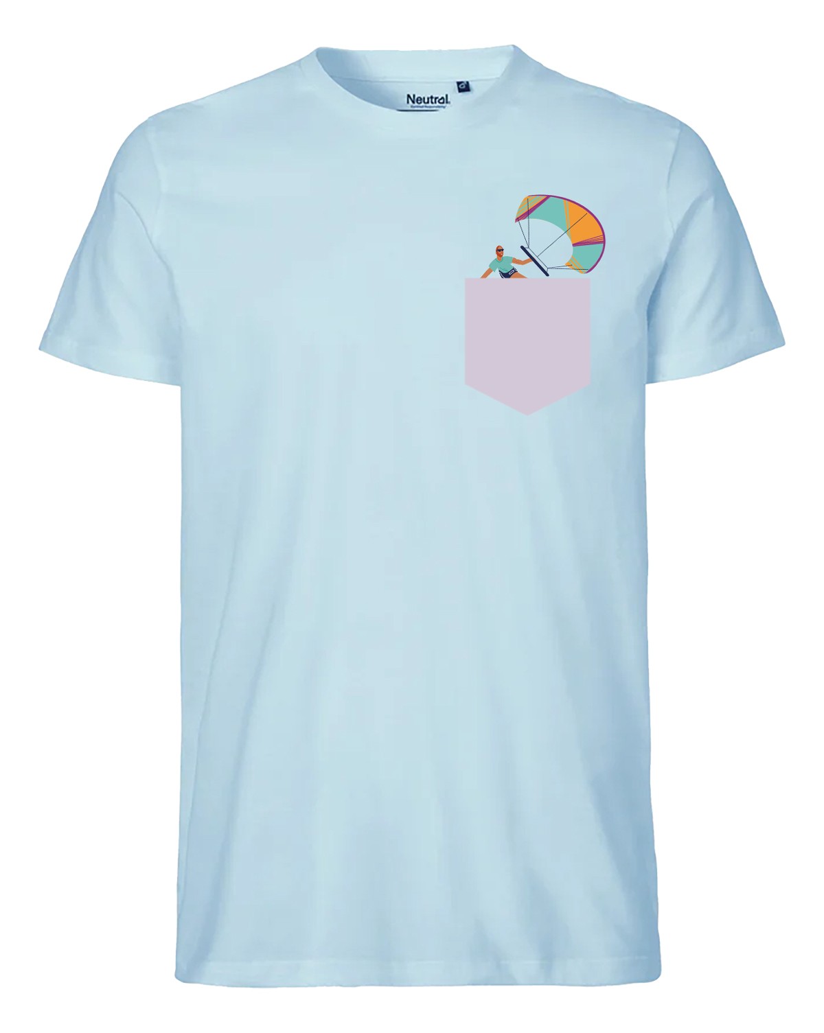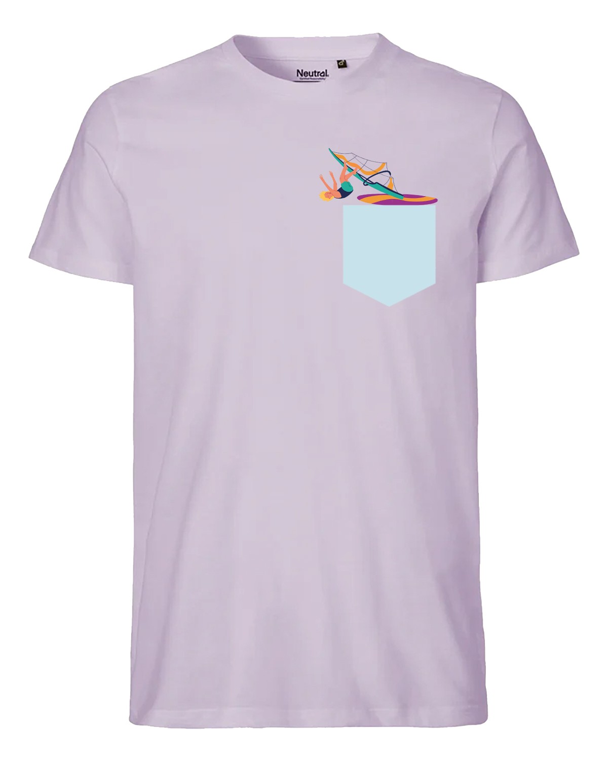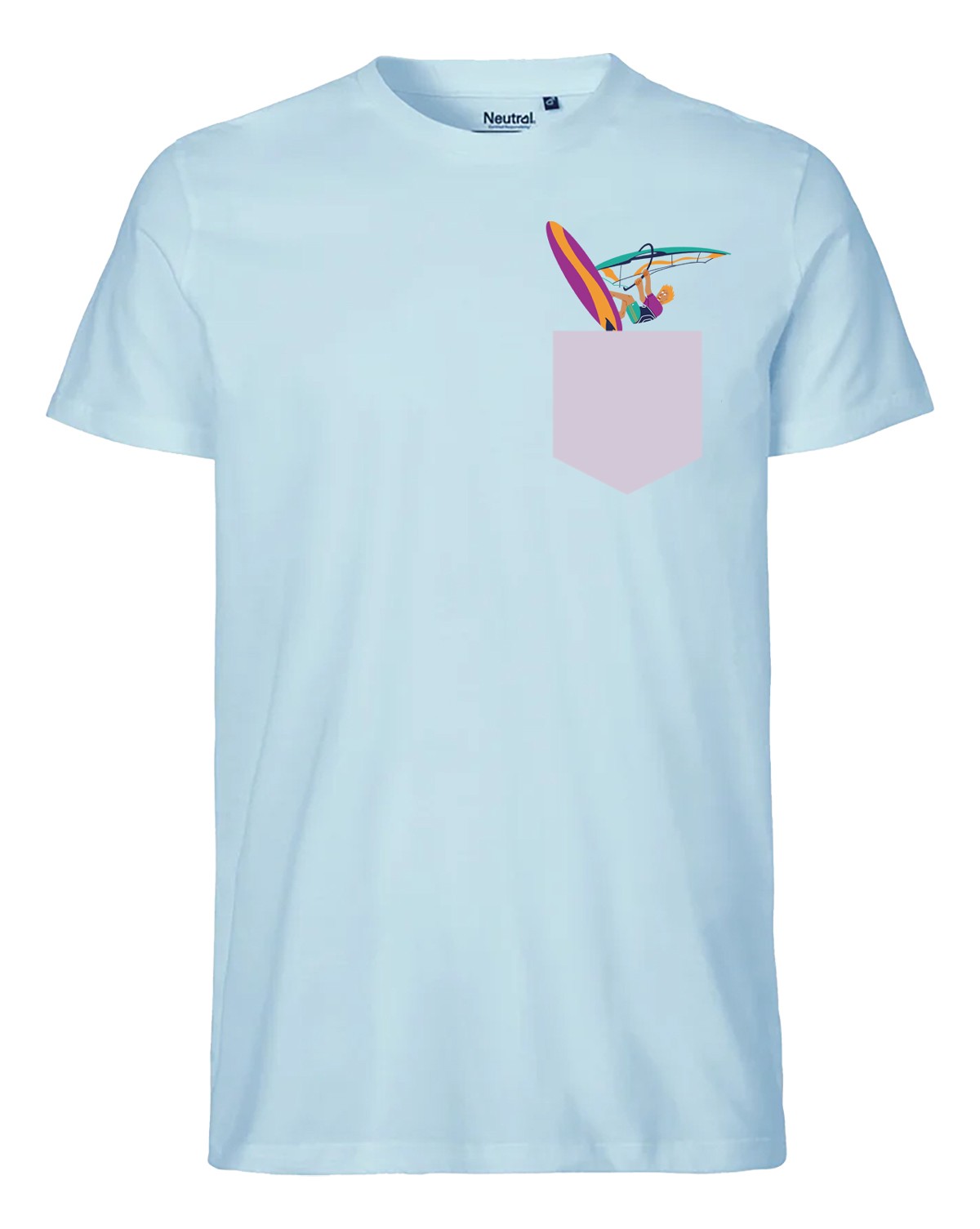 Оригинални забавни скечове от водните спортове (уиндсърф, сърф, кайтсърф) се разиграват между видимата илюстрация на тениската и невидимата в джоба.